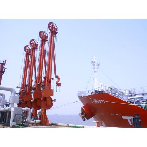 船用流體裝卸臂又稱輸油臂,用于碼頭和槽船的管道系統之間傳輸液態或氣態產品,是一種****、安全的油品碼頭裝卸設備。 1、當處于空載狀態時,整個臂在所有位置取得****平衡,設備操作輕便。 2、介質傳輸的過程中,裝卸臂在槽船正常漂移范圍與船隨動。 3、可通過范圍檢測系統,在槽船集管漂移出正常范圍時發出聲光報警。 4、旋轉接頭結構設計為可拆卸式,當更換密封圈時無需拆卸整臺臂,而可實現輕松更換。 5、液壓驅動船用裝卸臂系統由裝卸臂、電氣控制設備、液壓控制設備三部分組成。 FB型自支撐式裝卸臂: 1、操作簡便、自重輕、占地空間小、風載荷小。 2、管道既作為介質的通道,要承受介質的壓力,還要承受自身的結構載荷、風載荷和彎矩;采用較大的旋轉接頭以承擔內外部載荷和所有彎矩,立柱、耳軸和高點處旋轉接頭滾道均進行淬硬處理,在裝卸過程中,僅有內、外臂的介質總量和風載荷作用在槽船法蘭上。 3、適用于手動操作****理想的小噸位碼頭。 RC型獨立支撐式裝卸臂: 1、結構合理、經久耐用,具備在線檢漏功能,維護保養簡便易行、易于更換密封圈,而且旋轉接頭型號統一,密封件可以互換,減少了備件量。 2、獨立支承結構,采用與旋轉接頭同軸回轉的大直徑回轉支承來承擔結構載荷、風載荷和彎矩,工藝管線、旋轉接頭只承受介質壓力。 3、符合**嚴格的設計規范,而且在頂部和耳軸箱處安裝可拆式彎頭,從而不需要使用重型起重設備能夠進行密封的更換。適用于幾乎所有的碼頭。 4、電液控制部分裝卸臂控制部分由電氣和液壓兩大系統組成,性能安全****,易于擴容。 5、電氣系統具有內外控制電路檢測功能、限位開關狀態檢測功能、超位聲光報警功能,系統配備無線遙控,遙控器輕巧、操作簡便,可實現在輸油臂操作的同時,近距離觀察接口情況。 6、液壓系統驅動裝卸臂在六個方向運動,配備機泵和手動泵,一旦停電或電氣方面出現問題可選擇手動閥操作。 7、在對接完成后,裝卸臂處于自由浮動狀態。 |