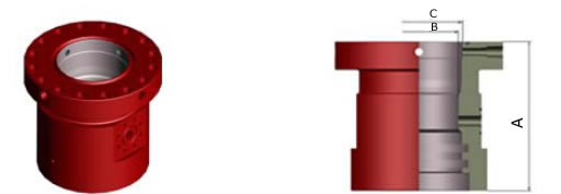 套管頭時(shí)連接套管和各種井口裝置的一種部件。用以支持技術(shù)套管和油層套管的重力,密封各層管間的環(huán)形空間,為安裝防噴器。油管頭和采樹油等上部井口裝置提供過度連接,并且通過套管頭本體上的兩個(gè)側(cè)口,可以進(jìn)行補(bǔ)擠水泥,監(jiān)控井沉和注平衡液等作業(yè)。