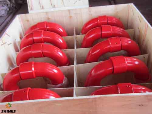 The long radius structure minimizes the corrosion of the flowing medium. The first layer of seal is the compound rubber with metal blowout preventing ring. In case of seal leakage, the pressure reducing butter retainer prevents pressure from accumulating inside the rolling track cavity. The streamline inside the rolling track cavity. The streamline nominal diameter minimizes the flow resistance. The design of smooth round caliber reduces fluid turbulence and pressure decrease and the long radius active elbow allows better fluidity. All ball tracks have been quenched and carbureted. Pressure resisting sealing property can protect the ball track as well as the steel ball from the impact of the liquids in the pipeline within the pressure range and under the suction working condition.
